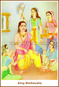 In his previous incarnation Lord Kunthunath's soul was King Simhavaha of Khadgi town in Mahavideh area. He was a powerful and illustrious king. He had a bend for spiritual practices and after handling over the responsibilities of the kingdom to his son, he took diksha from Samvaracharya and did deep spiritual practices. As a result of his vigorous penance and devotion for the Arhant, he earned Tirthankar-nam-and-gotra. Completing his age he reincarnated in the Sarvarthasiddha dimension of gods.