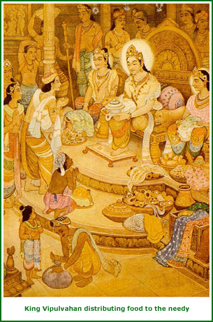 A long time after the Nirvana of Bhagavan Ajitnath, the city of Kshempuri in the Airavat area of Mahavideh was ruled by king Vipulvahan. He was a soft hearted and compassionate ruler who loved and cared for his subjects. Once when there was a devastating draught and the population was deprived even of a few drops of water, the king opened his grain yards for the public, his kitchen for the monks and ascetics and his treasury for the import of food grains. He instructed the caretaker of his personal kitchen that the doors of his kitchen should be open to all and sundry. All guests should be given priority over himself.