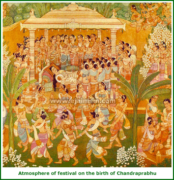 In his previous incarnation as king Padma of Mangalavati town of Dhatkikhand, the being that was to become Bhagavan Chandraprabhu earned Tirthankar-nam-and-gotra-karma. Spending a life time as a god in Anuttar Vijay dimension he descended into the womb of queen Lakshmana, wife of king Mahasen of Chandranana town.